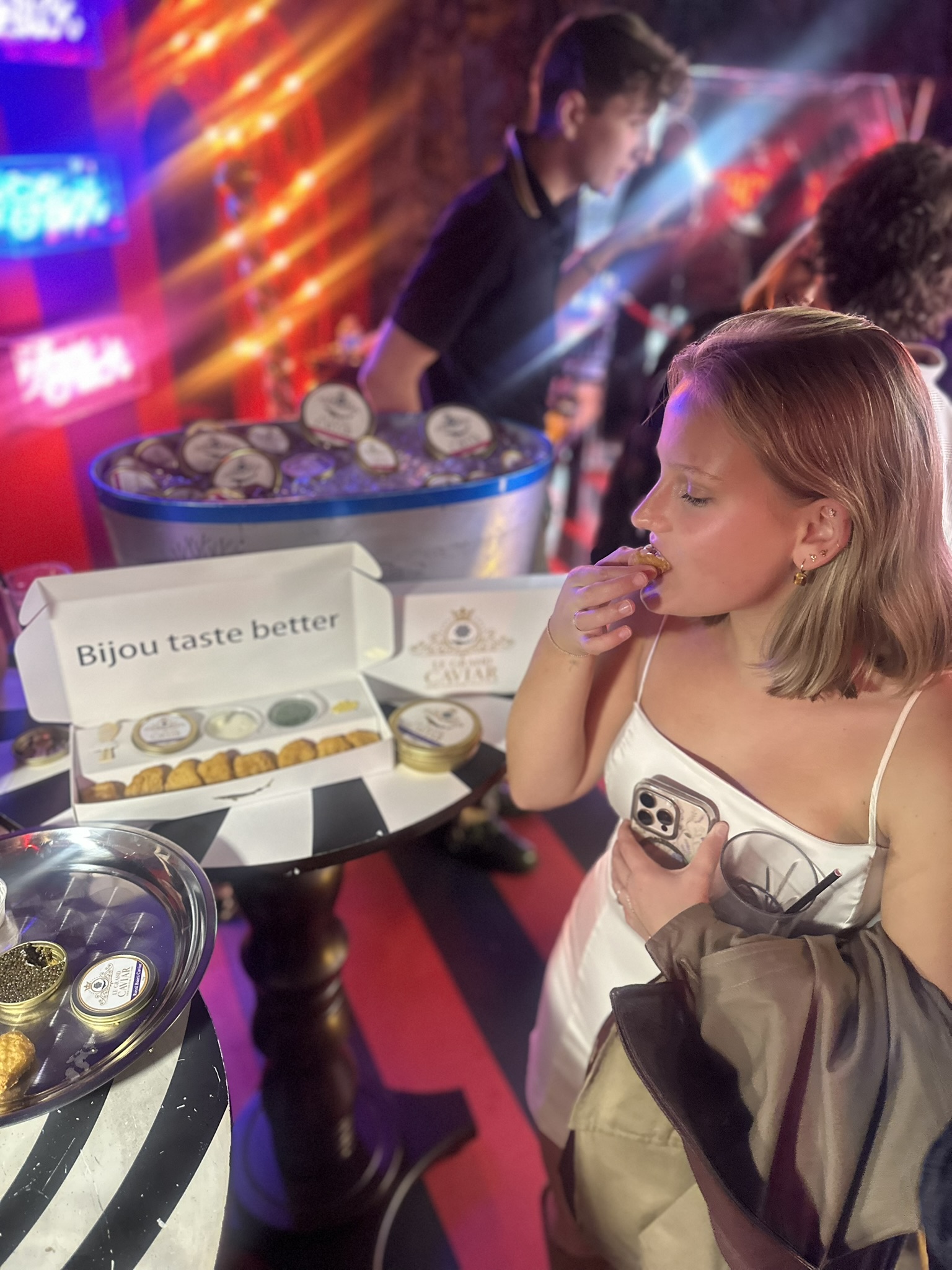 We proudly participated at CIRQ le Soir, bringing Le Grand Caviar’s signature pearls to Soho’s most exclusive nightlife. A night where neon met luxury and every bite shimmered with caviar magic.